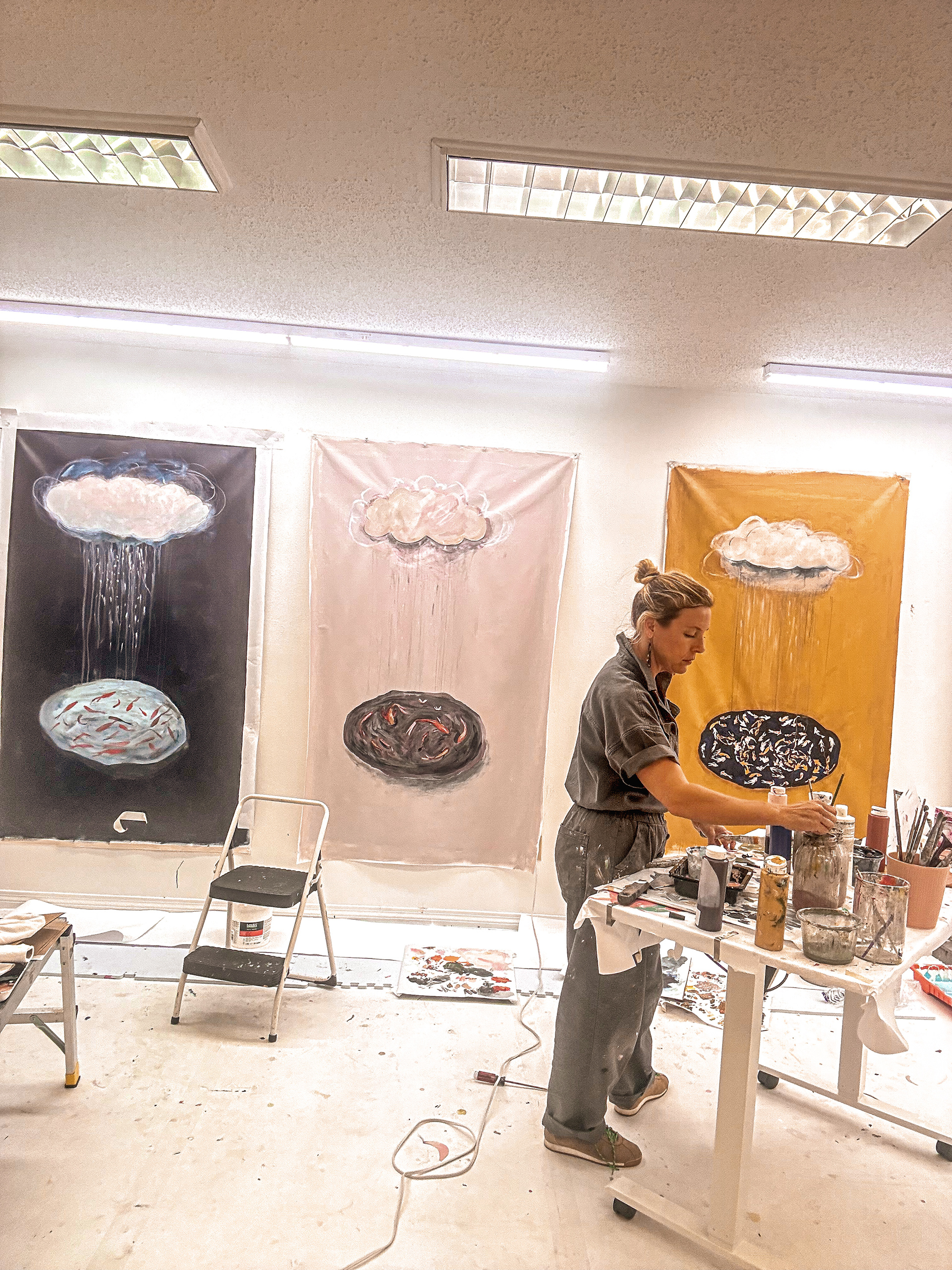 Amy Henry Centola is a visual artist based in New Orleans. She is compelled to create by self expression, creative play and storytelling. Centola uses paint, paper, drawing tools and other mixed media in her works. Her paintings are portals into reflection, memory, and daydream- spaces where imagination and emotion unfold. Centola received her BFA from Louisiana State University and later studied at the New Orleans Academy of Fine Arts. Her work has been exhibited in multiple shows at the New Orleans Academy of Fine Art Gallery and appears in private collections across the country. Centola was the 2024 artist in residence at the Academy of Sacred Heart in New Orleans. She had a solo exhibition at Sacred Heart in April 2024 and Gallery Orange held her premier solo exhibition October 2025.